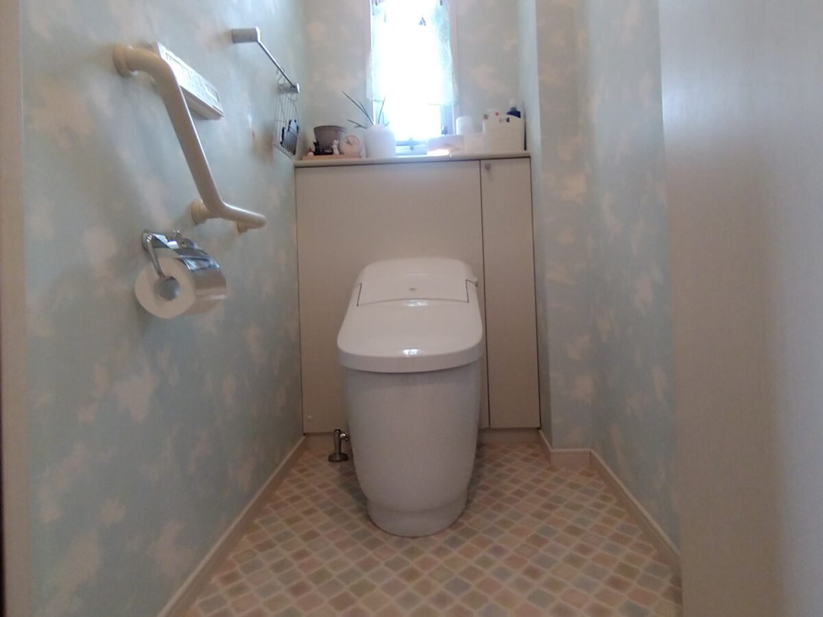 築20年以上とは思えないお手入れが行き届いていて、新しいトイレと洗面化粧台でより明るく素敵な雰囲気に仕上がりました。施主様には、『洗面化粧台の高さを上げて使いやすく、照明もLEDにすることで明るく使いやすくなりました。もっと早くお願いしてたら良かったと思える位、快適です。毎日気持ち良く過ごせています。』と大変喜んでいただきました!